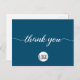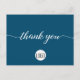 Personalise this simple and easy to use thank you postcard template with your company's logo, message, name, and return address. Let your clients, customers, patrons know you are grateful for their support during these uncertain times. Featuring a printed modern "thank you" script with long-tailed embellishments. Blue background.