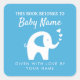 Custom cute baby shower bookplate sticker labels. Square book labels with cute elephant design. This book belongs to book sticker. Custom bookplate labels personalised with name of newborn child. Personalised for little boys and girls. Pastel blue or custom colour. Available in square and other shapes. Safari animal design. Given with love by...