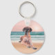 Custom Cute Great Dane Dog Sitting on Beach Key Ring