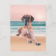 Custom Cute Great Dane Dog Sitting on Beach Postcard