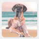 Custom Cute Great Dane Dog Sitting on Beach Square Sticker