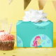 Cool customisable beach girl wrapping paper featuring a beautiful mermaid with pink hair on a teal bubble with water bubbles floating above. Personalise with the gift recipient's name in turquoise on the pretty pink.