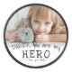 Custom Daddy you are Hero Blue Father`s Day Photo Hockey Puck. Personalised hockey puck. Custom photo and text is in simple hand drawn fonts. You can change daddy into dad, papa, pap,... and add your photo and names. A cute gift and a lovely keepsake for Father`s Day.