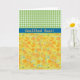 A pretty Get Well Greeting Card to personalise, with a pattern of golden daffodils, from a handpainted watercolour design by Judy Adamson, teamed with a coordinating green check gingham pattern.