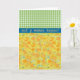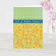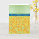 A pretty Greeting Card to personalise for Mother's Day, with a pattern of golden daffodils, from a handpainted watercolour design by Judy Adamson, teamed with a coordinating green check gingham pattern.