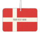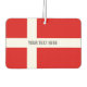 Custom Danish flag car air freshener. Coutry pride. Flag of Denmark with custom text for name, funny quote or monogram. Patriotic design to refresh your auto with different cool scents to mask dog / pet smell and other dirty stinky odours. Unique gift idea for men and women. Create your own for dad, mum, mother, father, uncle, grandpa, brother, son, sister, wife etc. Custom air refreshener with customisable template. Make it smell like a fresh new car or the sea. Double sided design. Make your own slogan or saying.