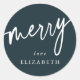 Custom Dark Green+White 'Merry' Christmas/Holiday Classic Round Sticker
