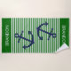 Enjoy total comfort at the beach or sitting poolside, and cool and dry off with this fun, colourful and comfy beach towel. With room to customise or personalise with a name, monogram, initials or (limited) text of your choice. Stand out in the sand with this beautiful contemporary ship anchor on a classic dark green and white stripes pattern background. Modern and stylish design for the sailor or boater, ocean or sea, boating, sailing or water sports lover.