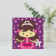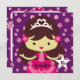A cute and colourful birthday invitation your little princess is sure to love featuring a dark haired little princess with a tiara and pink dress on a background of purple with pink and white flowers. You can easily add her name, age, and birthday party specifics to this easy to customise princess birthday invitation before ordering.