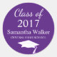 Dark purple background with white lettering creates a bold personalised graduation sticker. Class of and then the graduation year starts the sticker. The graduate's name and high school follows. A white graduation cap outlined in bright lime green completes this personalised graduation sticker. A variety of contemporary fonts gives this sticker a modern vibe. Use it as an envelope seal on graduation invitations and announcements. It would look great decorating a mortar board too!