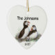 Custom Dated Christmas Together Puffins Bird Ceramic Tree Decoration