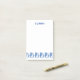 Custom sticky notes with art deco blue letters and a row of blue racing sailboats along the bottom.