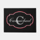 A custom design for your doorway, this welcome mat features both a monogram and last name surrounded by a decorative frame in black with red accent. Insert your name and initial in place of the sample text shown in the design template. To change the font, select the "customise it" button.