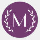 Custom Deep Purple Laurel Monogram Letter Initial Classic Round Sticker