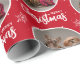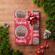 Custom Deep Red Merry Christmas One Circle Photo Wrapping Paper