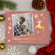 Celebrate the season with this elegant gold foil holiday card, featuring a graceful reindeer and delicate snowflakes against a trendy peach coral red background. A shimmering foil border frames your personal photo, making your family’s holiday wishes shine bright. The front reads “Wishing you a magical Holiday Season” in gleaming gold, capturing the warmth, joy, and sparkle of the holidays. On the back, you’ll find a ready-made heartfelt holiday poem that can be adjusted to your liking. Perfect for mailing to friends, family, or clients, this card blends modern sophistication with festive charm. Add your family name or greeting for a personalised touch that makes every card uniquely yours.