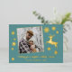 Celebrate the season with this elegant teal blue-green holiday card, accented with shimmering gold foil reindeer and delicate snowflakes. A gleaming foil border frames your personal photo, making your family’s holiday wishes shine with style and sophistication. The front reads “Wishing you a magical Holiday Season” in radiant gold, perfectly capturing the sparkle and joy of the season. The back includes a ready-made heartfelt holiday poem that can be customised or replaced with your own message. Perfect for mailing to family, friends, or clients, this card blends modern chic design with festive charm. Add your family name or greeting for a personalised touch that makes every card uniquely yours.
