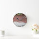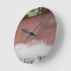 The clock did not take as long to arrive as I thought it might and was extremely well packaged. I didn't do the measurements so I didn't realize it is a little smaller than the average clock but that does not matter (just make sure you check if that's important to you).It is really nifty! It seems very solid and well made not flimsy at all. It has been going well and has kept good time in its few weeks on my wall. Nice product. Gets noticed too! Nicer in real life than the picture but true to the picture