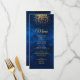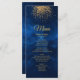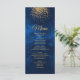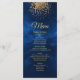 This elegant modern wedding menu has a splash of gold confetti on a blue universe background with stars. You can add your menu details by clicking on the customise link. This is part of a gorgeous wedding suite with matching table number cards, place cards and many more items.