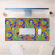 LOVE this desk mat! It's large! It fits across my desk. No need for a small mouse pad now! Color and print are excellent. Quality seems to be excellent too. Delivery was about 3 days sooner than expected. I think this is one of my favorite Zazzle products! Excellent. The color is vibrant and true to what I expected.