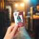This is an easy to customise professional ID badge. The red wave detail compliments the information contained within the badge.