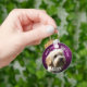 On the back, you can put your phone number or any other custom text. Customise this keychain with your dog's favourite photo (for best results, use a transparent image) and name. You can change the background, font, text colour whatever the design tool allows.
