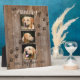 In Memory of your dog, cat, or any pet with paws. Designed with a rustic wood look and brown paw prints. Pay tribute to a loved pet with this personalised memorial gift keepsake or offer your condolences with a personalised sympathy gift from Healing Tears to honour a special dog in your life or a friend's dog that they will cherish. Add your photo images and change the text (Name and dates) to your own. This design features 3 placeholders to add your dog photograph.