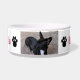 Cute custom dog bowl (or cat bowl)! Personalise with your pet's photo and name in pink. Adorable paw prints on the sides of the photo. Perfect for your fur baby!