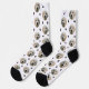 Cute custom dog photo and paw print pattern socks featuring your dog's photo and a paw print pattern set against a white background. Simple to customise by adding your dog's photo and using the "adjust" feature to crop and centre your photo, the background colour can also be changed if preferred.