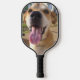 Get your game on with this Custom Dog Photo Personalised Pickleball Paddle. Choose your very own favourite pet photo for the template. Name is in trendy black hand lettered script across the lower centre on both sides of the paddle. This modern design was created with a personal family pet picture. Makes a perfect gift idea for a dog lover!