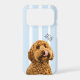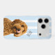 Show off your furry best friend everywhere you go with this personalized dog photo phone case. Featuring your dog’s photo and custom name on a soft blue striped background, this stylish case combines protection with personality.