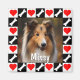 Make your own custom dog photo square magnet, with your own personalized dog picture and dog name or text. Just click to personalize the template and replace the dog photo and name with your own. These make an excellent personalized gift idea for any dog lover: dog mom, dog dad or family. Makes a special dog memorial gift, or just for celebrating your furry friend.
