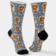 Show your love for your puppy dog or cat with these fun and cosy custom-printed socks! Our premium crew socks feature a pattern of your favourite pet photo along with small white paw prints. Create your own by simply adding your picture to the round placeholder image. Makes a great gift idea and stocking stuffer! Photo tip: crop your photo to a square shape prior to upload so it is centred within the round space. The slate grey blue background colour can be modified.