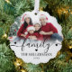 Celebrate the joy of the season with this elegant paper ornament that doubles as a holiday card, featuring your favorite photos. The front displays the word “family” in flowing script across the top, with your family name below in a timeless serif font for a personal touch. The back includes space for a second photo, perfect for another favorite memory or festive moment.