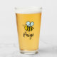 Custom drink glass with cute happy animated honey bee logo and name. Personalized gifts.