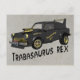 A computer-generated, black and gold, image of a customised East German Trabant automobile. The customised car's nickname, Trabasaurus rex, in an appropriate font, appears both on the vehicle door and below the image. The vehicle bears an Idaho license plate reading "TRABI REX" as it was customised by mythical Warsaw Pact Wonder Wheels (Classic Commie Cars) in Sandpoint. The Trabant was the people's car of East Germany "Trabant" means travelling companion and was inspired by the Russian word "sputnik" with the same meaning. Over 3 million Trabants were produced in the span of 30 years. The Trabant's engine was underpowered, inefficient and created much pollution. The much maligned Trabant, or Trabi as it was commonly known, has long been the butt of jokes, but has become trendy in recent years. Some have been imported to the United States. The roof, trunk lid,hood,fenders, and doors were constructed with Duroplast, a hard plastic akin to Bakelite, made of recycled materials: cotton waste from the Soviet Union and phenol resins from the East German dye industry. This made the Trabant the first car with a body made of recycled material and was partially responsible for the misconception that it was made of cardboard. Various crash test results showed it performed better than comparable contemporary Western hatchbacks.