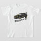 A computer-generated, black and gold, image of a customised East German Trabant automobile. The customised car's nickname, Trabasaurus rex, in an appropriate font, appears both on the vehicle door and below the image. The vehicle bears an Idaho license plate reading "TRABI REX" as it was customised by mythical Warsaw Pact Wonder Wheels (Classic Commie Cars) in Sandpoint. The logo of Warsaw Pact Wonder Wheels appears on the back. The Trabant was the people's car of East Germany "Trabant" means travelling companion and was inspired by the Russian word "sputnik" with the same meaning. Over 3 million Trabants were produced in the span of 30 years. The Trabant's engine was underpowered, inefficient and created much pollution. The much maligned Trabant, or Trabi as it was commonly known, has long been the butt of jokes, but has become trendy in recent years. Some have been imported to the United States. The roof, trunk lid,hood,fenders, and doors were constructed with Duroplast, a hard plastic akin to Bakelite, made of recycled materials: cotton waste from the Soviet Union and phenol resins from the East German dye industry. This made the Trabant the first car with a body made of recycled material and was partially responsible for the misconception that it was made of cardboard. Various crash test results showed it performed better than comparable contemporary Western hatchbacks.