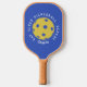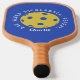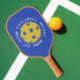 This Custom Eat Sleep Repeat Pickleball Paddle features a blue background with a yellow pickleball in the centre of the keychain with the saying "eat sleep repeat pickleball wrapped around the ball. Personalise it with your name or initials in a script font. A great gift for a coach or pickleball enthusiast.