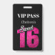 Custom Elegant Birthday Black Sweet 16 VIP ID Badge