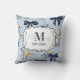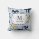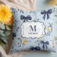 Custom Elegant Blue Bow Floral Monogram Cushion