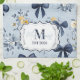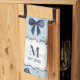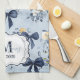 Custom Elegant Blue Bow Floral Monogram Tea Towel
