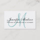 Elegant Monogram Customisable Mummy Calling Card. Being a mother is just as difficult, if not harder, than any professional career. Why not elevate it to a professional level with this elegant monogram business card. Add your information. Choose your colours. Card is free to customise but design may not be copied and used for commercial purposes. Elke Clarke©