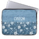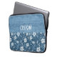 Custom Elegant Botanical Blue Faux Denim Look Laptop Sleeve