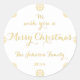 Elegant, custom, personalised, white, beautiful faux gold script / typography "We wish you a Merry Christmas", snowflakes, classic round stickers sheet. To customise, simply type in your name / couple's names / family name / last name, and the year. A beautiful sticker perfect for your christmas mailings this holiday season.