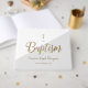 Custom Elegant Grey gold Cross Baby Baptism Guest Book