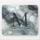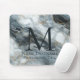 Custom Elegant Monogram Blue Grey Black Marble Mouse Pad