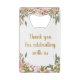 Express gratitude to your guests with our elegant pink floral Greenery wedding bottle opener These modern, minimalist favours adorned with calligraphy script, pink florals, and subtle gold accents make perfect thank-you favours. Give a touch of sophistication to your guests with these stylish and practical tokens of appreciation.