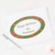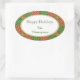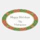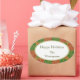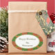 An elegant custom Christmas or holiday gift or baking sticker with script and vintage block letters and red and green holiday art with an elegant vintage fleur de lis pattern restored from antique tiles.