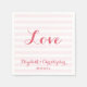 Create your own custom, personalised, elegant, modern, pink stripes pattern, beautiful typography / script / font, wedding / anniversary party cocktail paper napkins. Simply type in bride and groom's or wife and husband's names, and the wedding date, to customise. Elegant, classy paper napkins, perfect for wedding reception, anniversary celebrations, engagement party, and more.