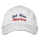 Custom Embroidered Hat/Baseball Cap flex! The ultimate unisex Father’s Day or Mother's Day Gift. Displayed Features patriotic customisable text: " god bless america" print - 4th Of July Patriotic Flag colours red white and blue .